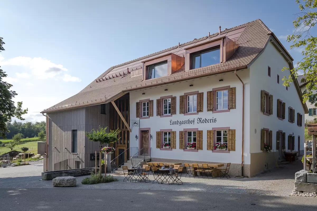 Im Herzen des Schweizer Juras, im Gebirge des Schwarzbubenlands, erwarten dich einzigartige Erlebnisse. Die Küche des Landgasthof Roderis zeichnet sich aus durch ein jung dynamisches Küchenteam auf der Basis der klassischen Küche, inspiriert durch die Produkte des Schwarzbubenlandes mit viel Sorgfalt verarbeitet und neu interpretiert. Saisonale Produkte liegen uns am Herzen, denn so können wir Hand in Hand mit den Bauern und Produzenten in der regionalen Umgebung zusammenarbeiten.